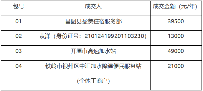 辽宁省高速公路实业发展有限责任公司铁岭分公司小业态经营租赁招商项目(项目编号:TLHX2026XJ-001)评审工作于2026年1月13日在铁岭恒信招标投标有限公司会议室结束。招商人直接委托评审小组确定成交人,现将成交结果公告如下: