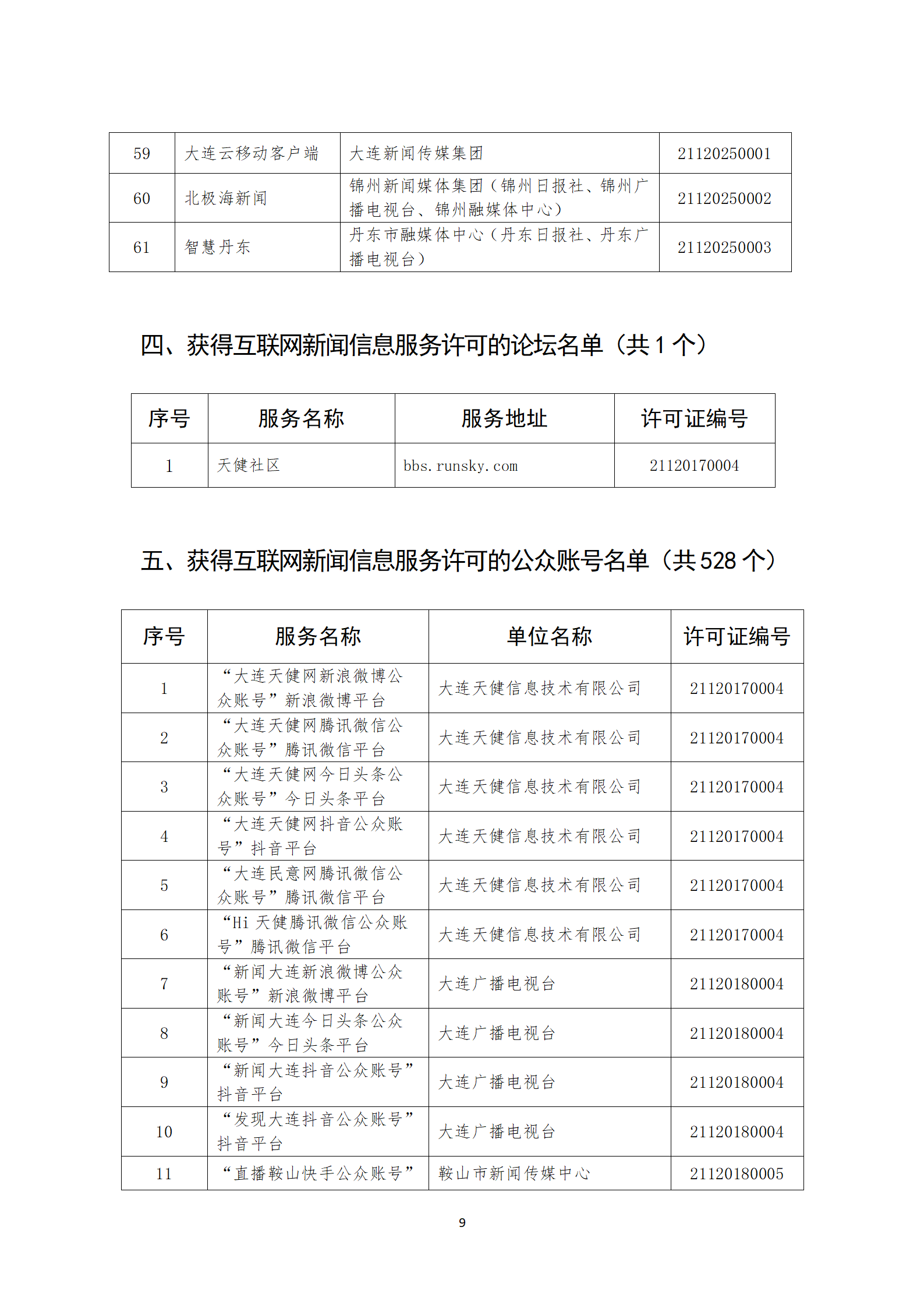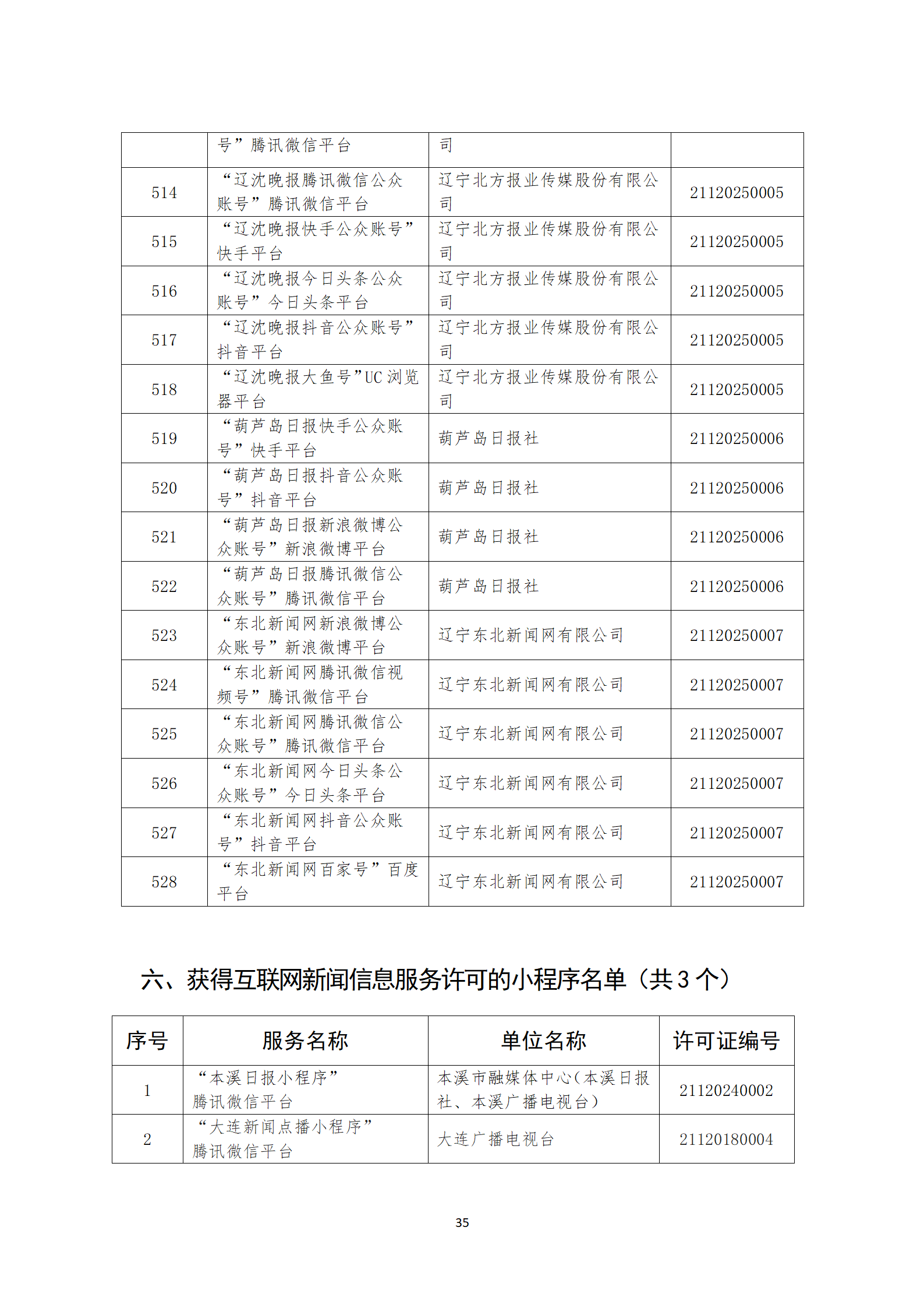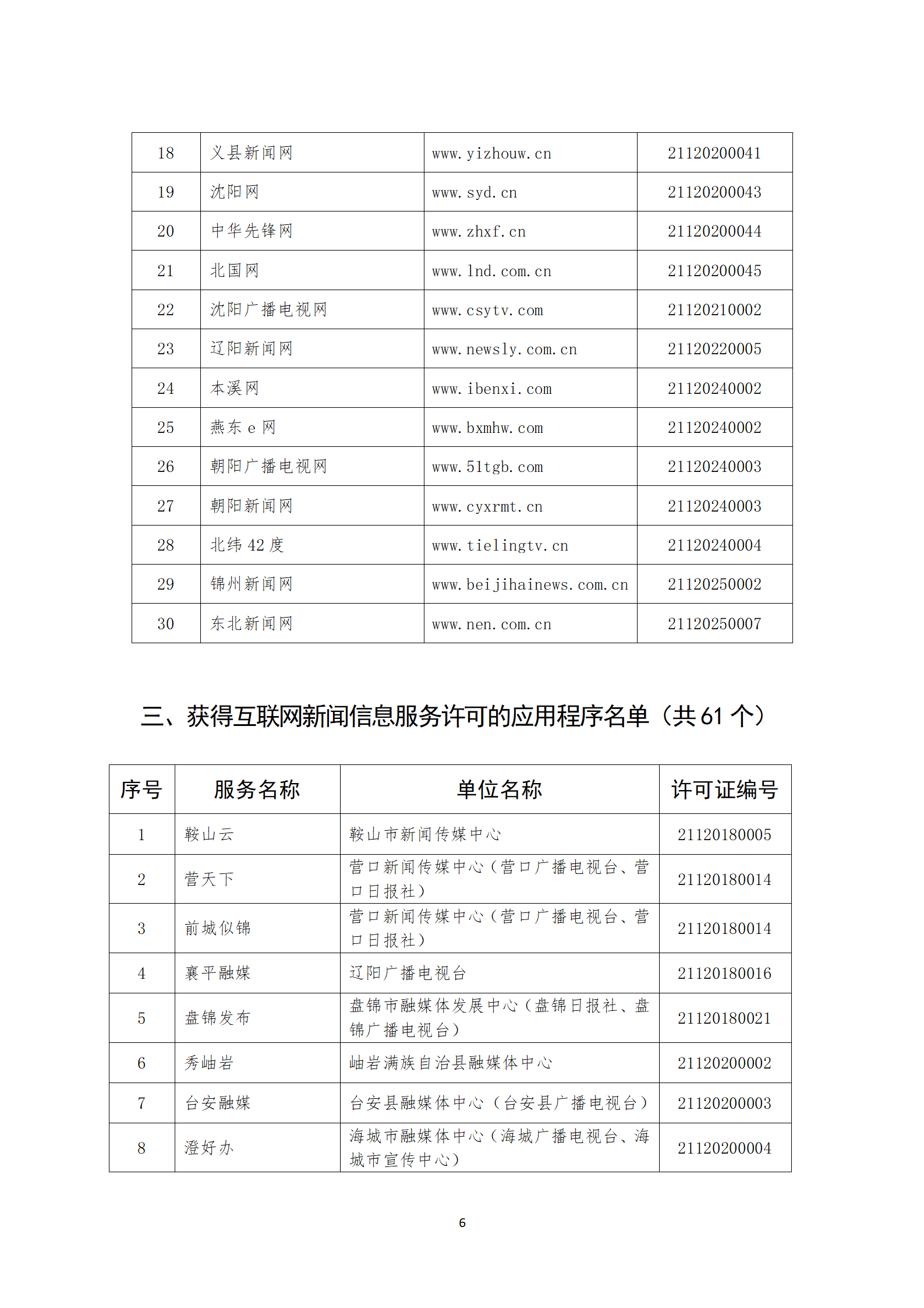 辽宁省互联网新闻信息服务单位许可信息