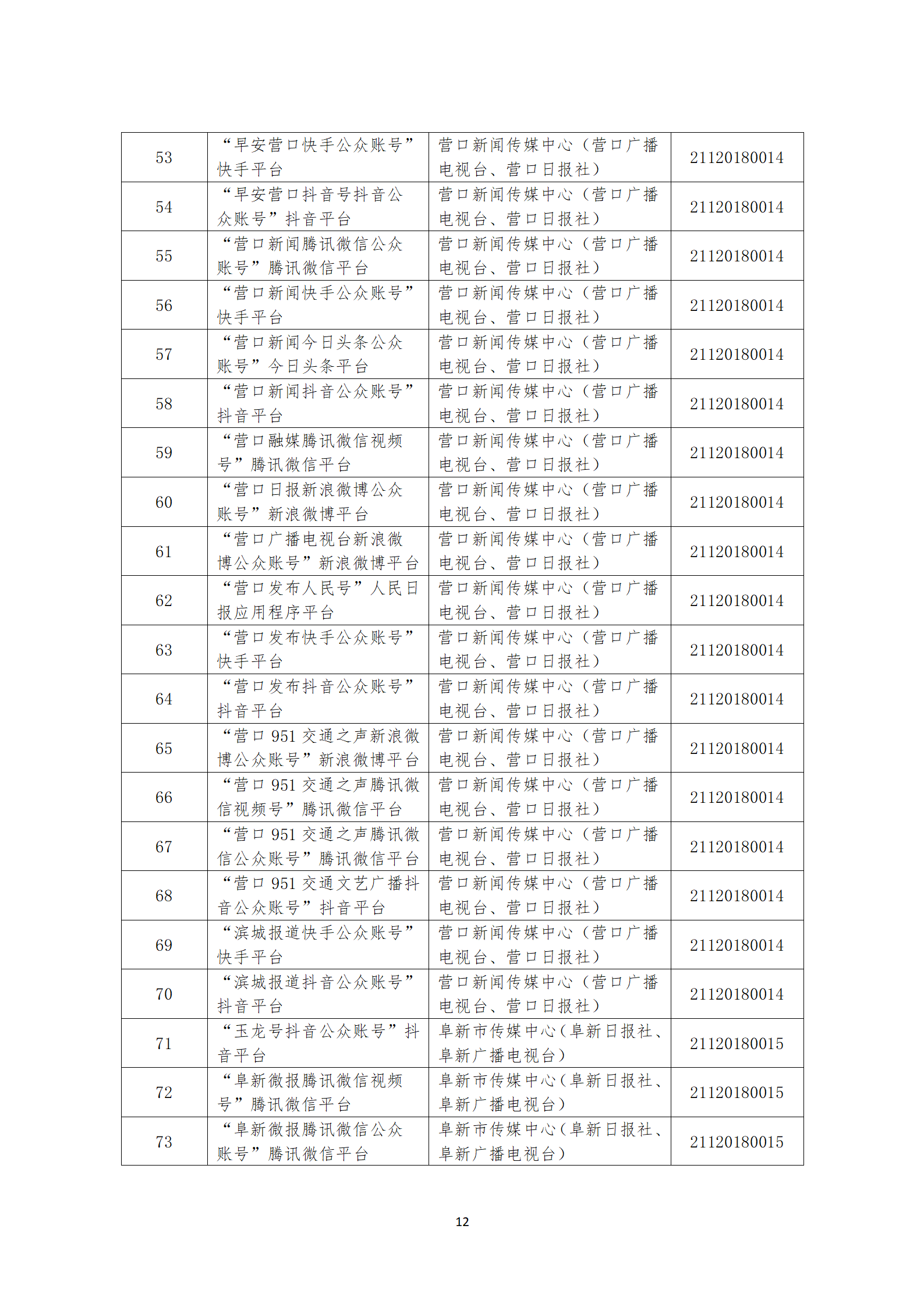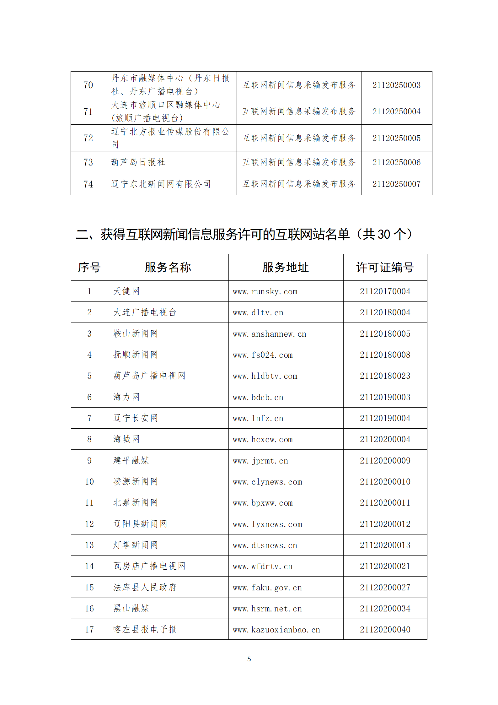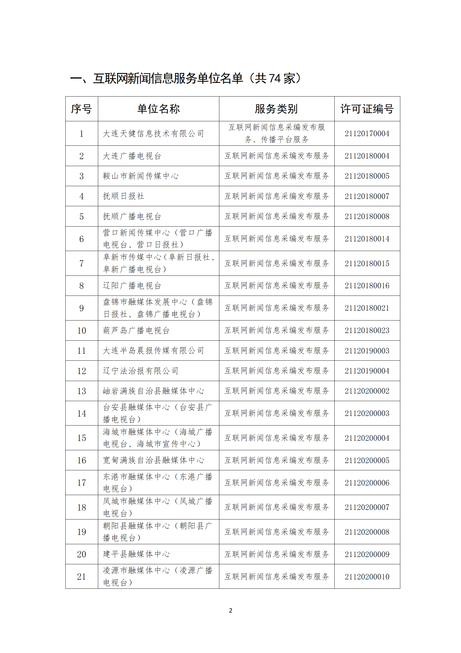辽宁省互联网新闻信息服务单位许可信息