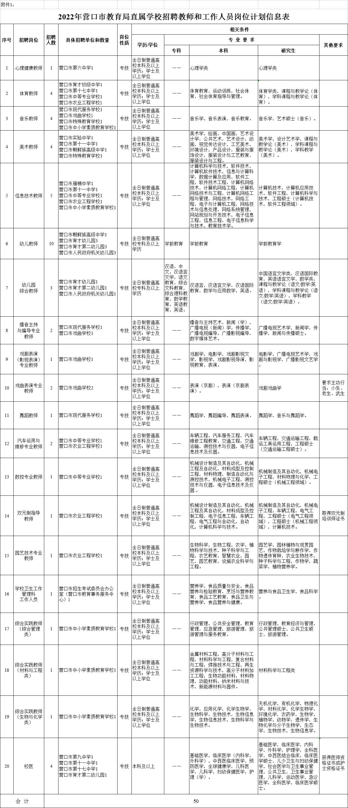 1.招聘岗位所需要的具体资格条件详见《2022年营口市教育局直属学校招聘教师和工作人员岗位计划信息表》(附件1)。