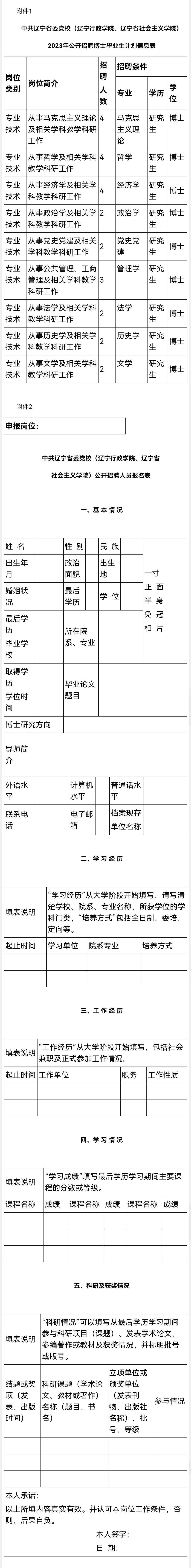 2.中共辽宁省委党校(辽宁行政学院、辽宁省社会主义学院)公开招聘人员报名表