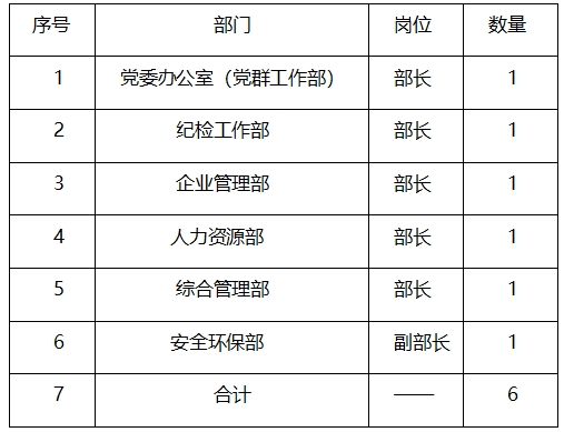 为满足企业当前经营发展需要,现面向社会公开招聘,有关情况公告如下: